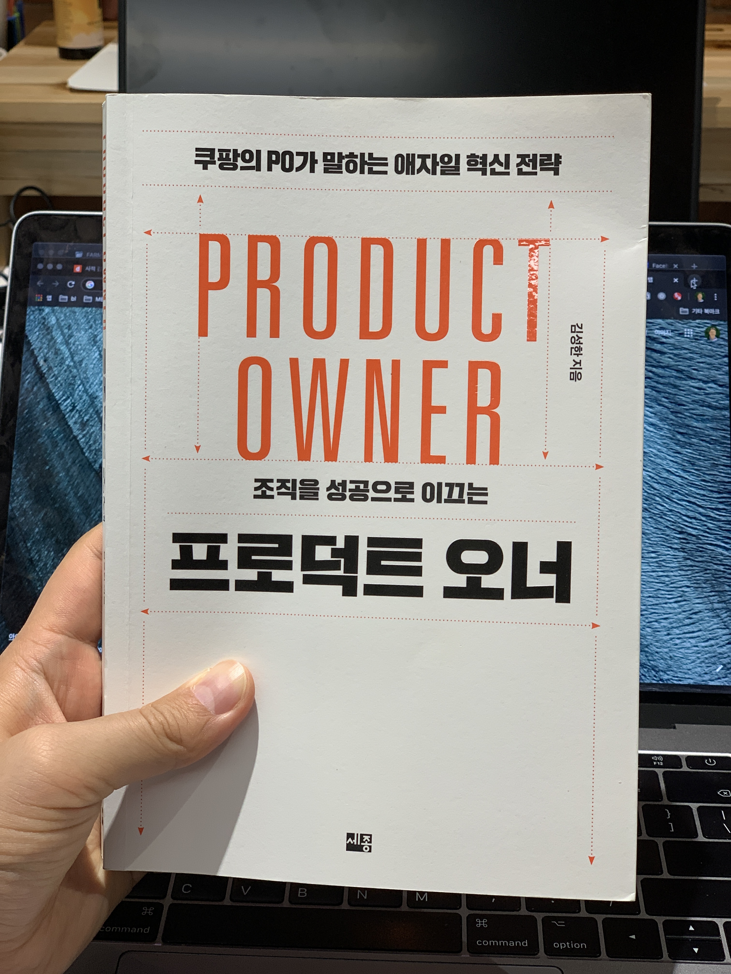 이 책의 풀 네임은 ⟪조직을 성공으로 이끄는 프로덕트 오너⟫. 표지에 있는 홍보 문구는 “쿠팡의 PO가 말하는 애자일 혁신 전략”이다.
