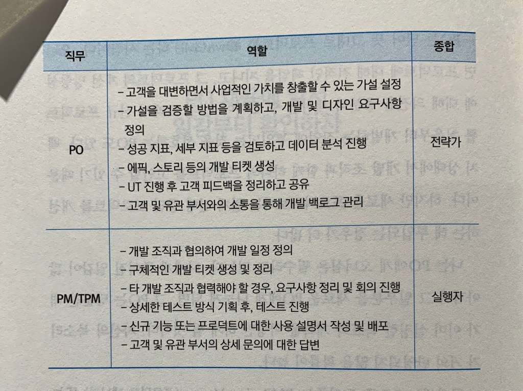 - 프로덕트 오너십 — 프로덕트에 대한 직접적인 가설 설정과 요구사항 정의 — 를 갖고 있다. (285쪽)